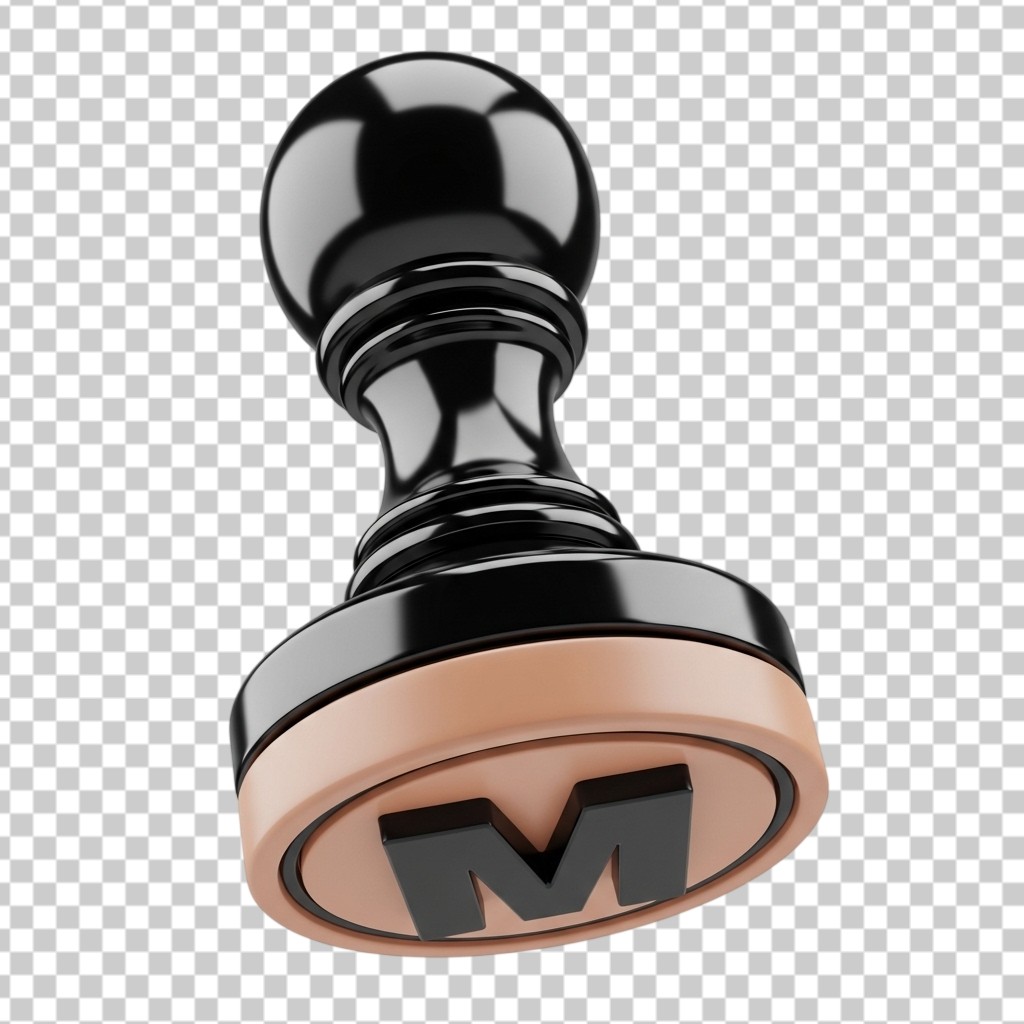 3D Black Rubber Stamp with Metal Handle Icon PNG Transparent Background