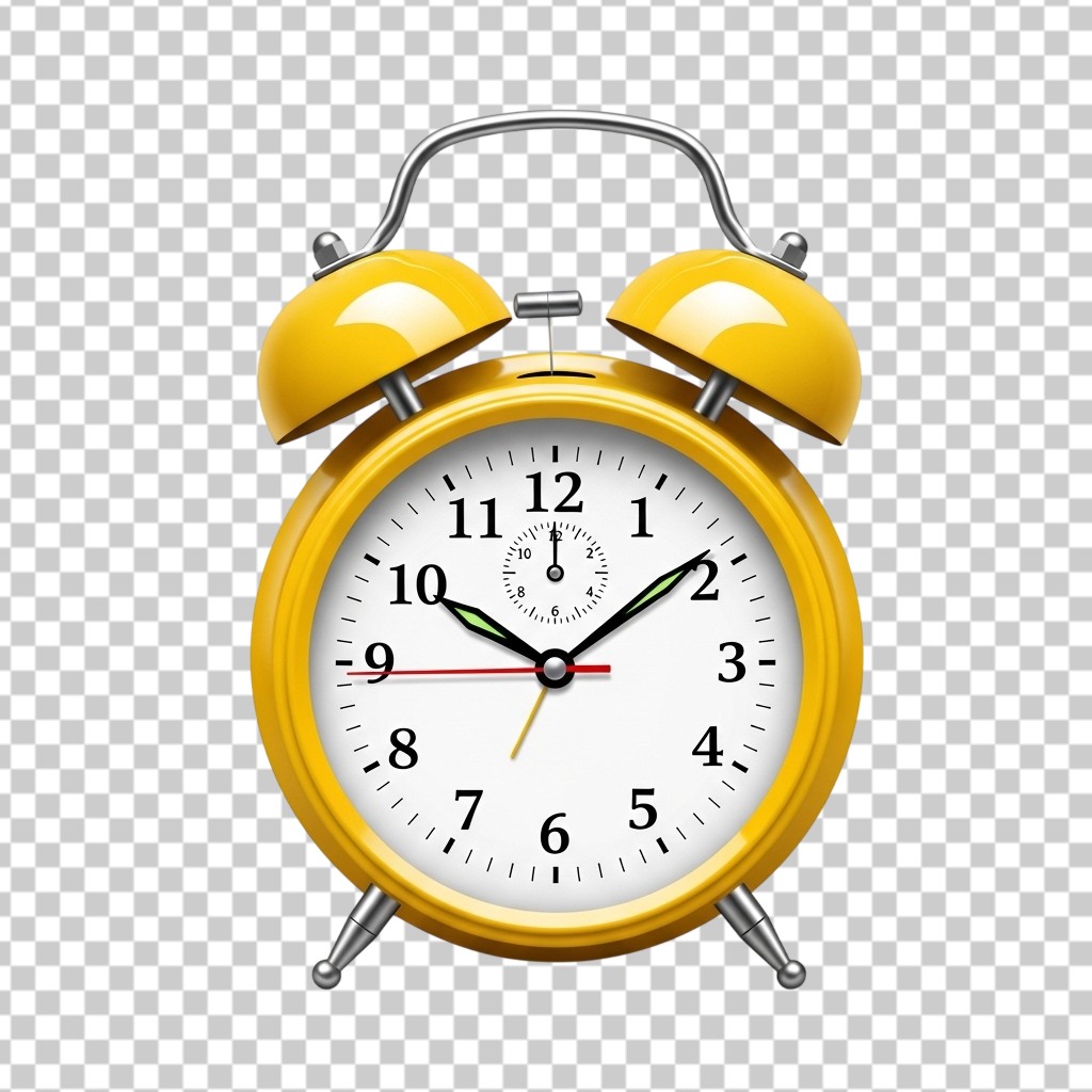 Classic Yellow Retro Alarm Clock with Twin Bells PNG Transparent Background
