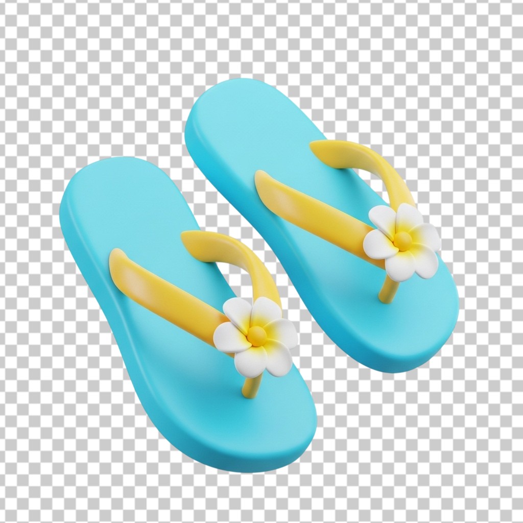 3D Blue Flip Flop Sandals with Flower PNG Transparent Background