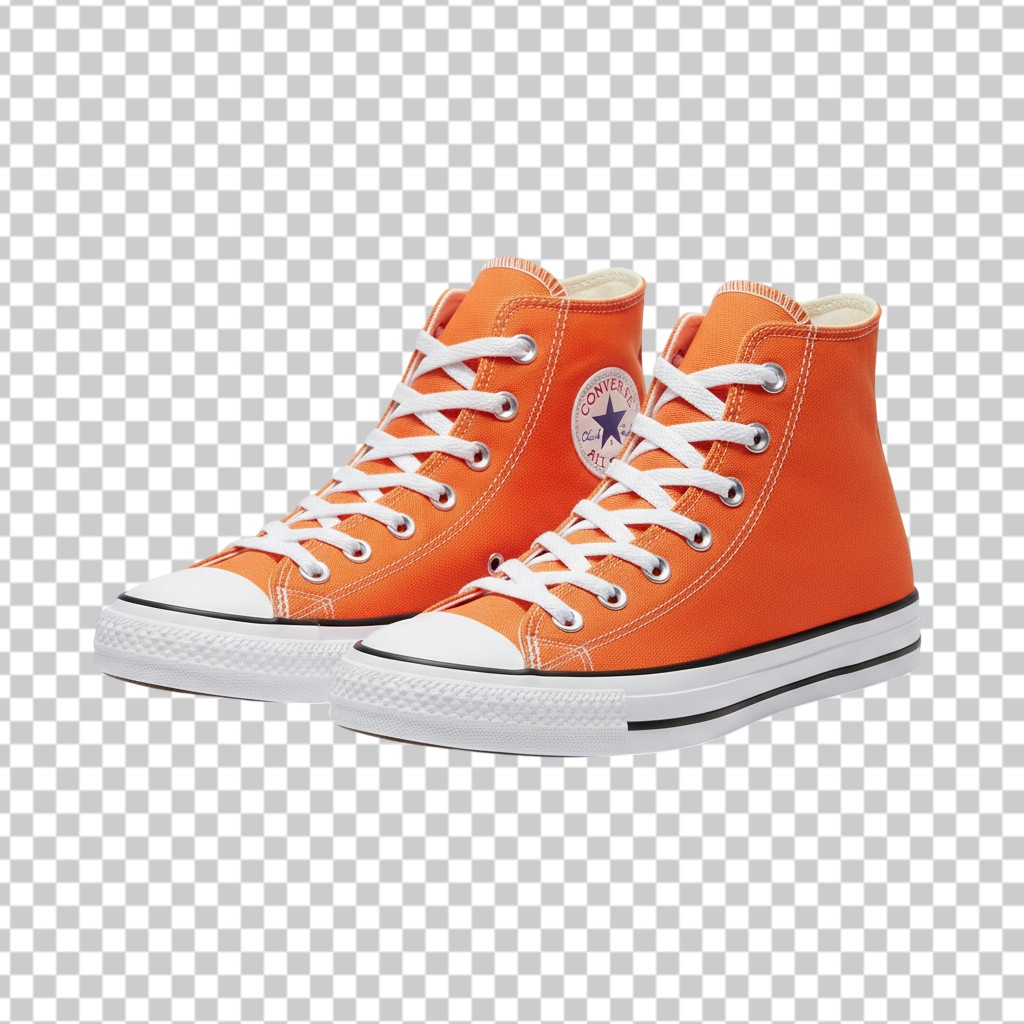 Pair of Orange High Top Canvas Sneakers PNG Transparent Background