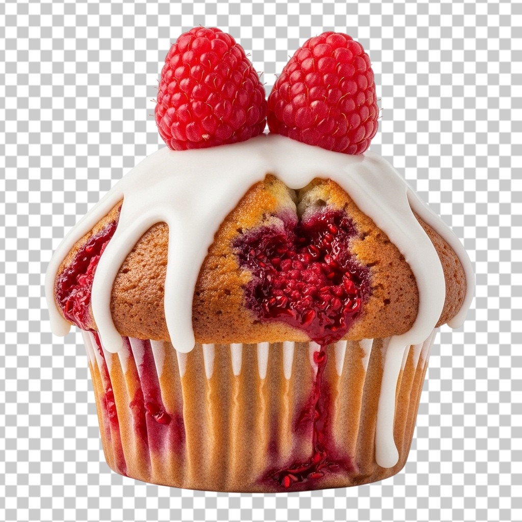 Gourmet Raspberry Cupcake with White Frosting and Fresh Berries PNG Transparent Background