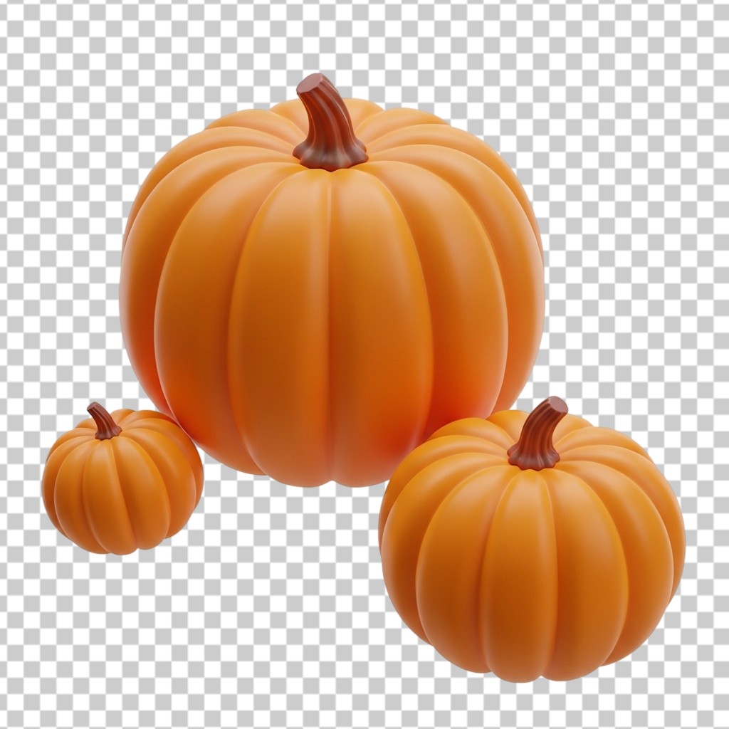 3D Set of Three Orange Pumpkins Halloween Decoration PNG Transparent Background