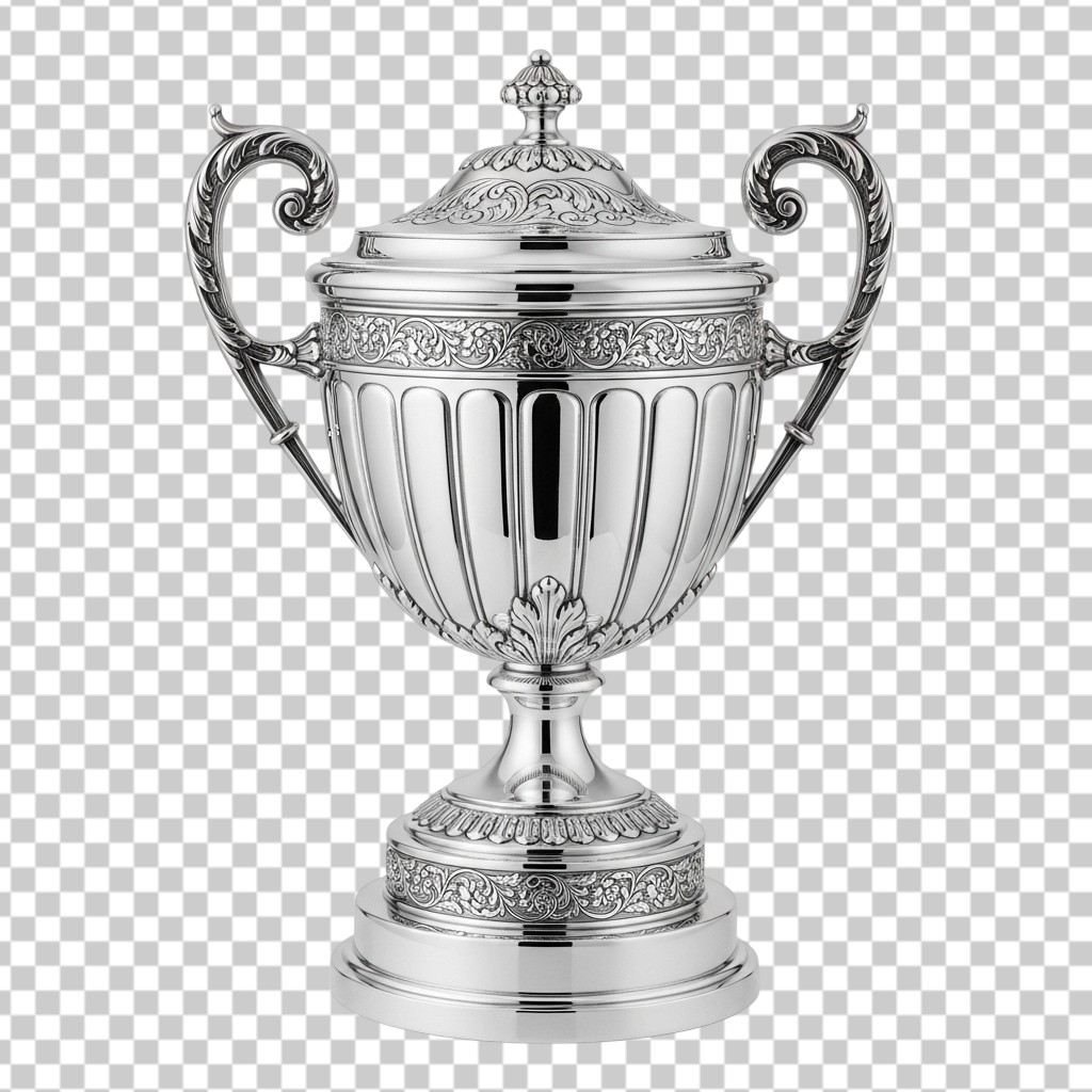 Ornate Silver Winner Trophy Cup for Sports and Events PNG Transparent Background