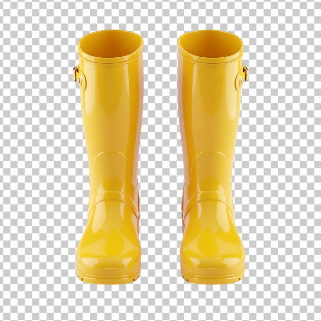 3D Yellow Rubber Rain Boots Illustration PNG Transparent Background