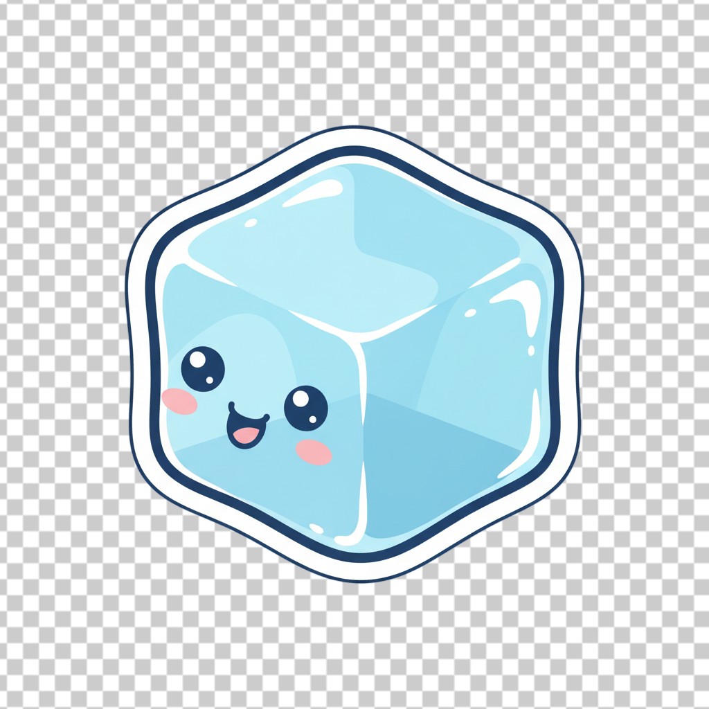 Cute Kawaii Ice Cube Character with Happy Face PNG Transparent Background