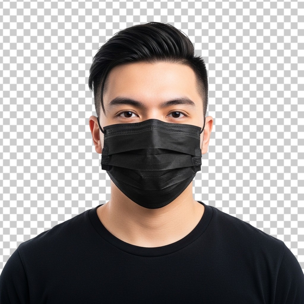 Young Man Wearing Black Face Mask Protection Concept PNG Transparent Background