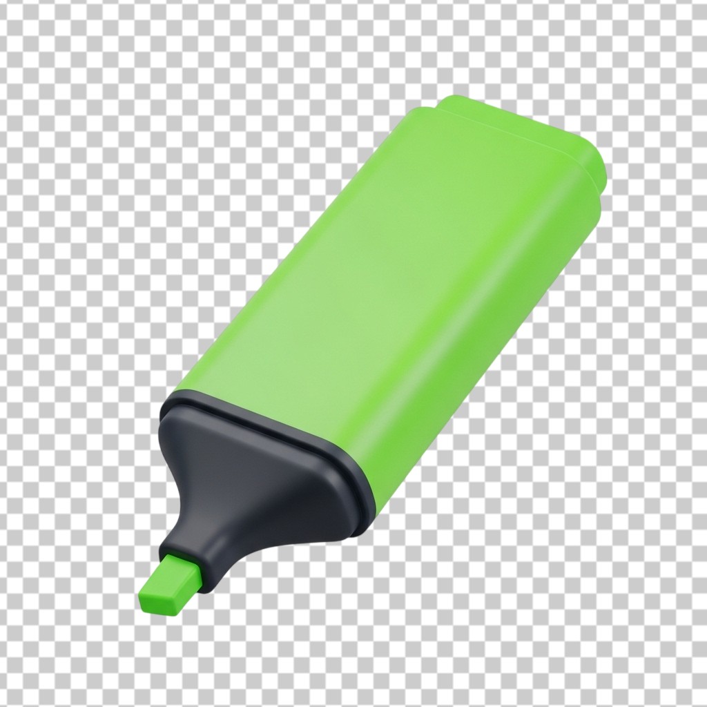 Bright Neon Green Highlighter Pen 3D Icon for Office and School Stationery PNG Transparent Background