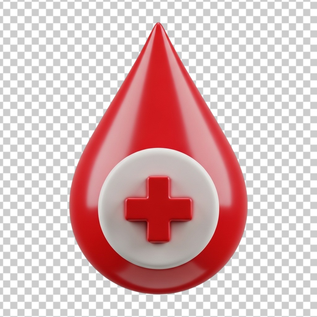 Medical 3D Blood Drop Icon with Cross Symbol PNG Transparent Background