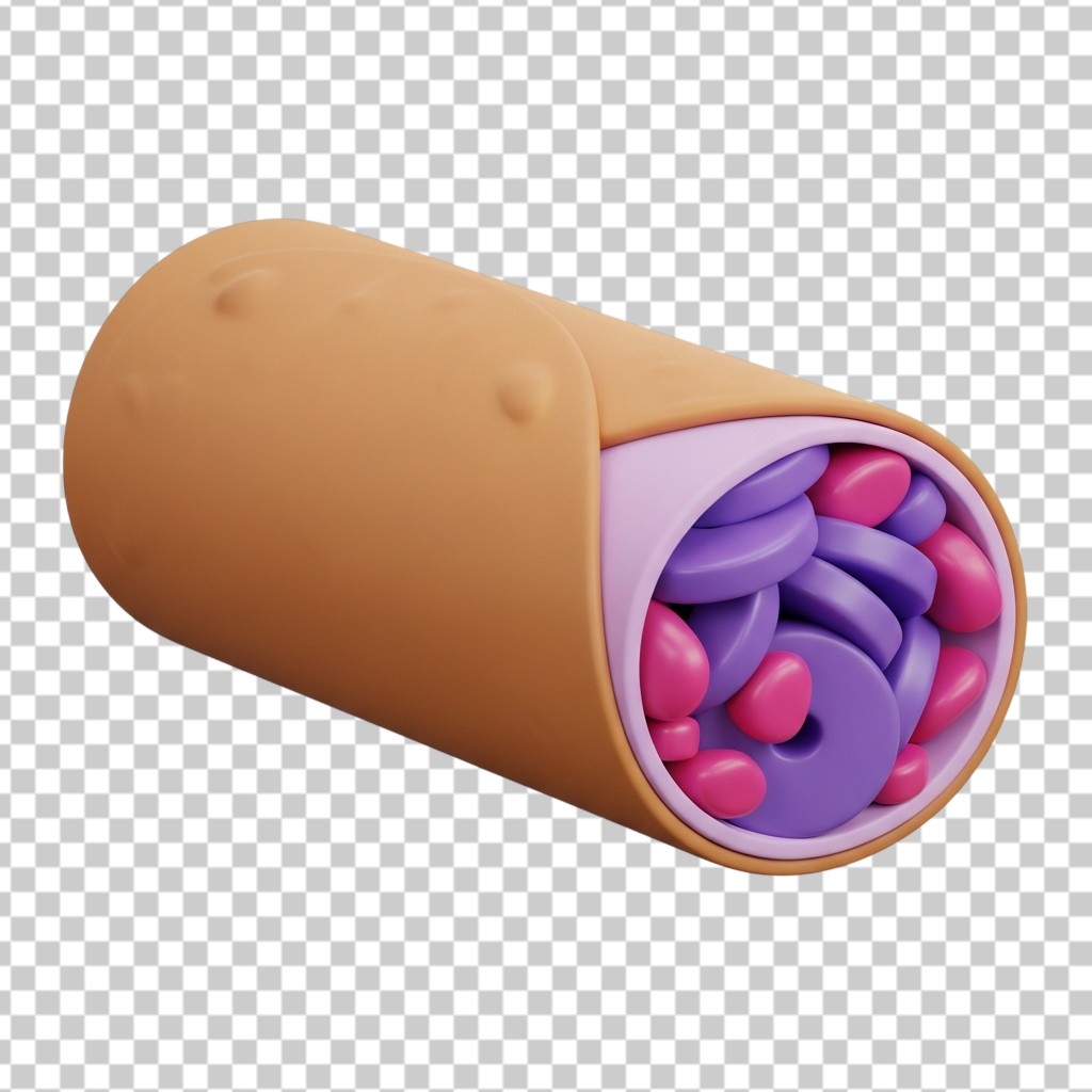 3D Tasty Burrito Wrap Food Illustration for Mexican Cuisine PNG Transparent Background