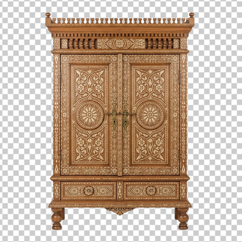 Intricately Carved Antique Wooden Cupboard Cabinet PNG Transparent Background
