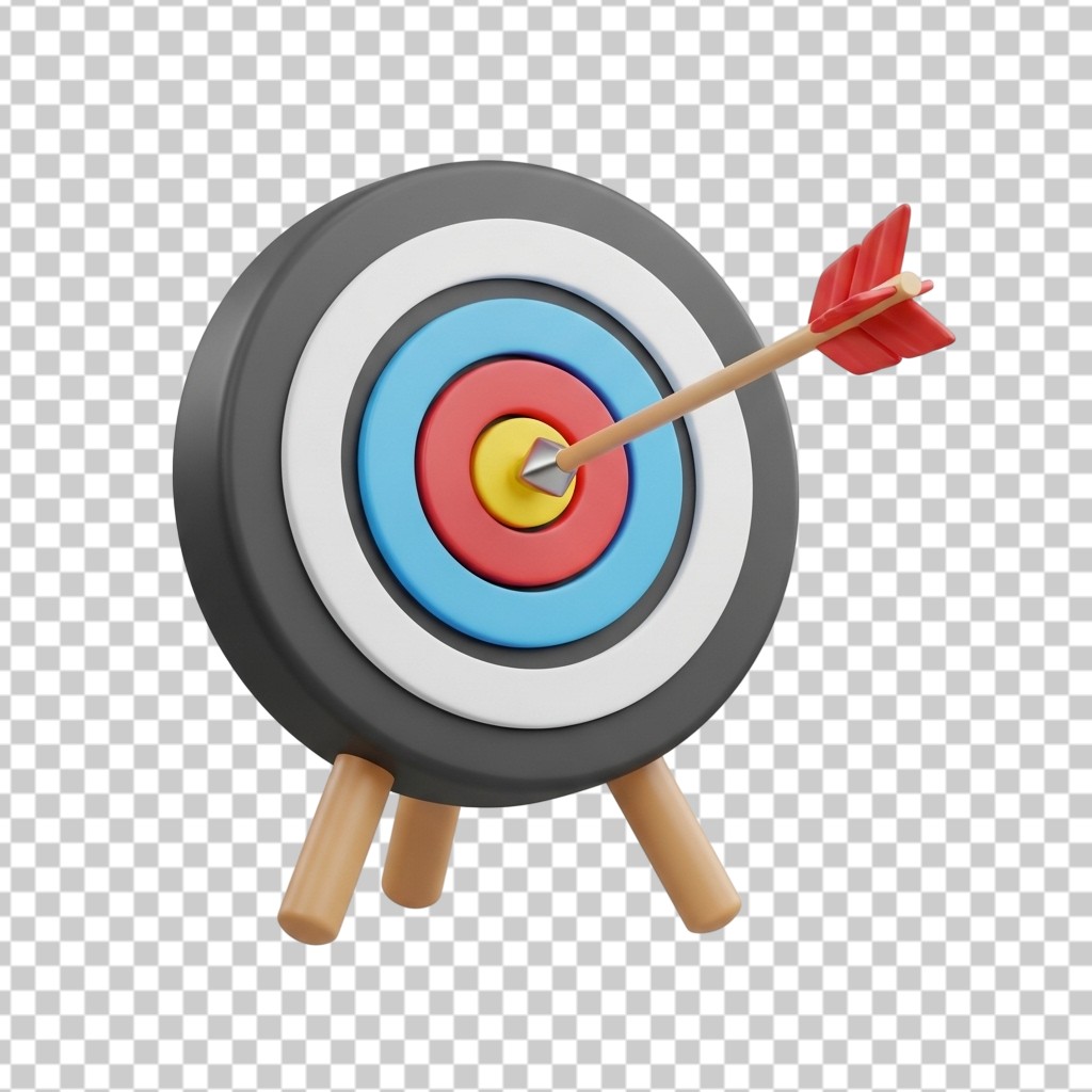 Target Board with Arrow in Center 3D Rendering PNG Transparent Background