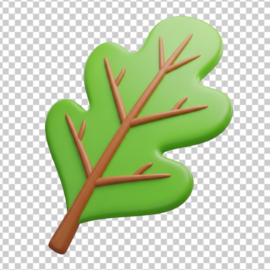 3D Green Oak Leaf Illustration for Nature Theme PNG Transparent Background