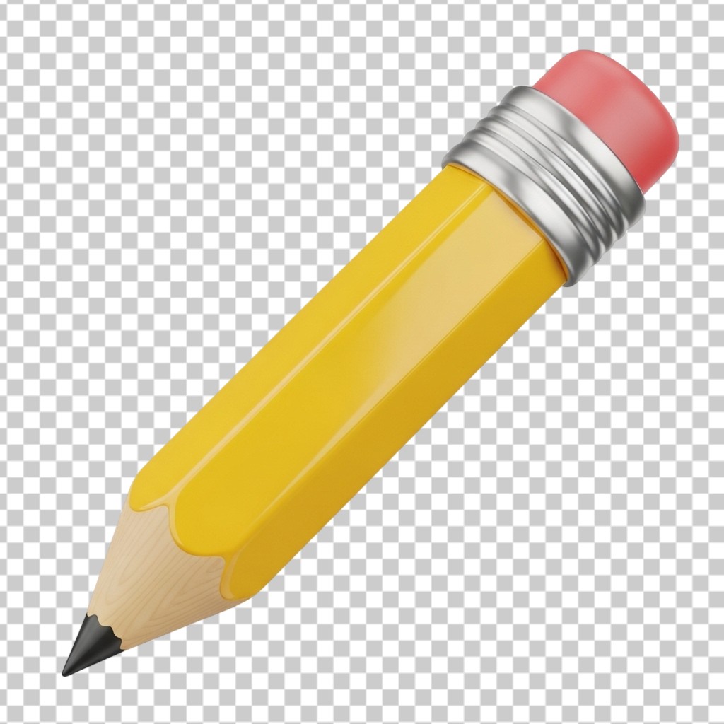 3D Yellow Pencil with Eraser Writing Stationery Illustration PNG Transparent Background
