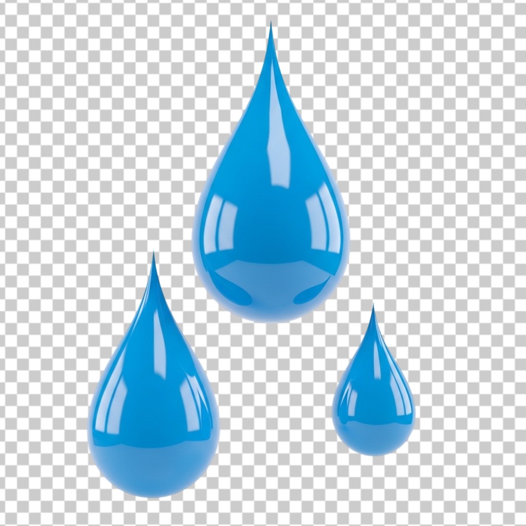 3D Blue Water Drops Set Crystal Clear Liquid Splashes PNG Transparent Background