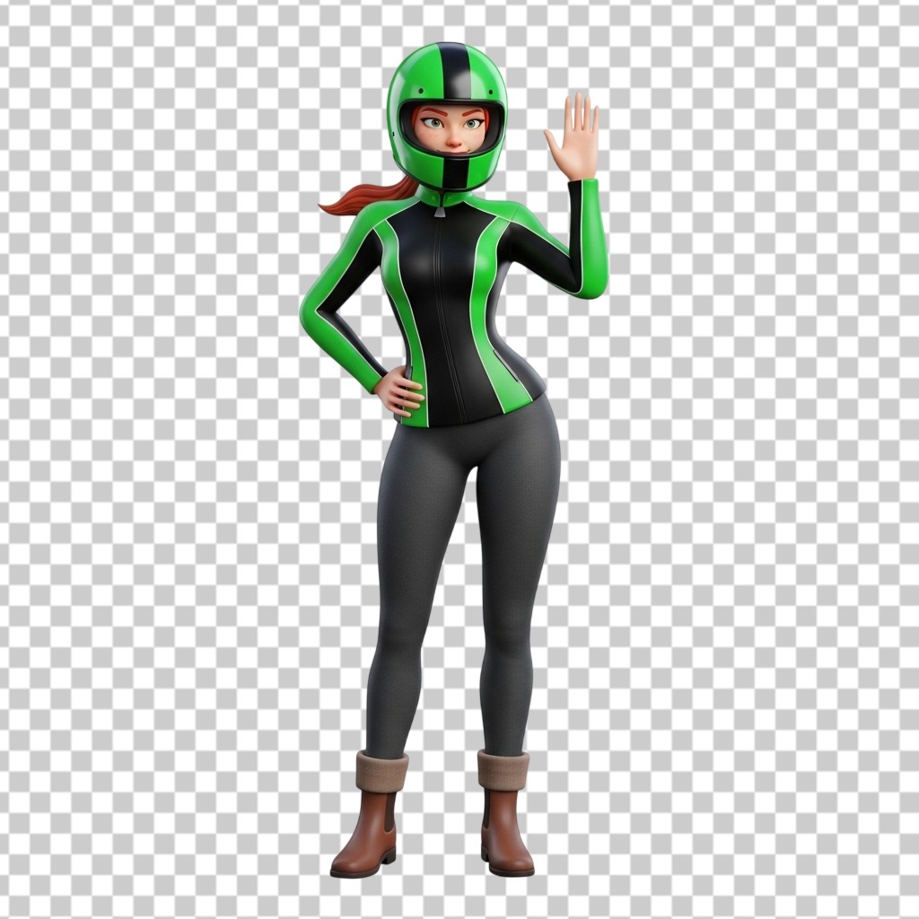 Sporty 3D Woman in Racing Suit Avatar PNG Transparent Background