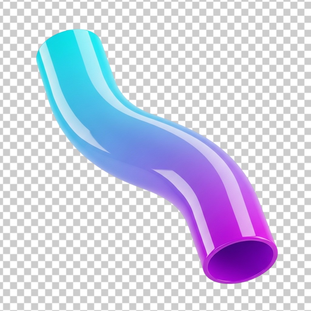 Abstract 3D Glossy Curved Tube with Vibrant Purple and Blue Gradient PNG Transparent Background