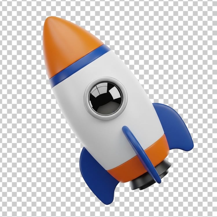 3D Space Rocket Ship Launching into Galaxy PNG Transparent Background