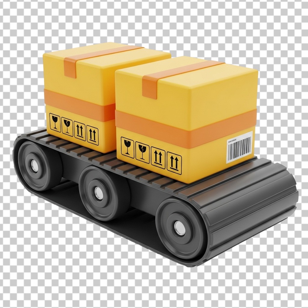 3D Warehouse Boxes on Conveyor Belt PNG Transparent Background