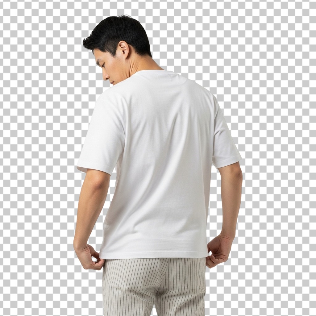 Back View of Man Wearing Plain White Short Sleeve T-Shirt PNG Transparent Background