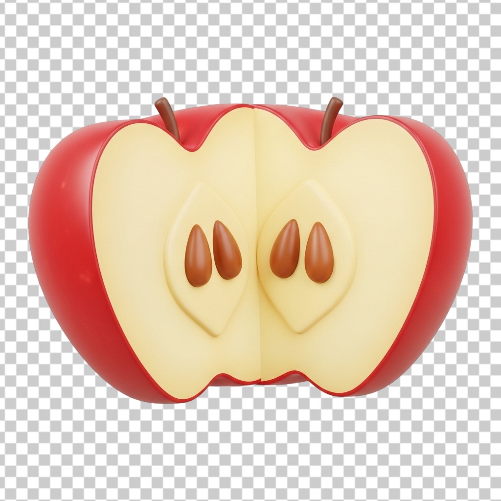Two Halves of a Fresh Sliced Red Apple Showing Core and Seeds PNG Transparent Background