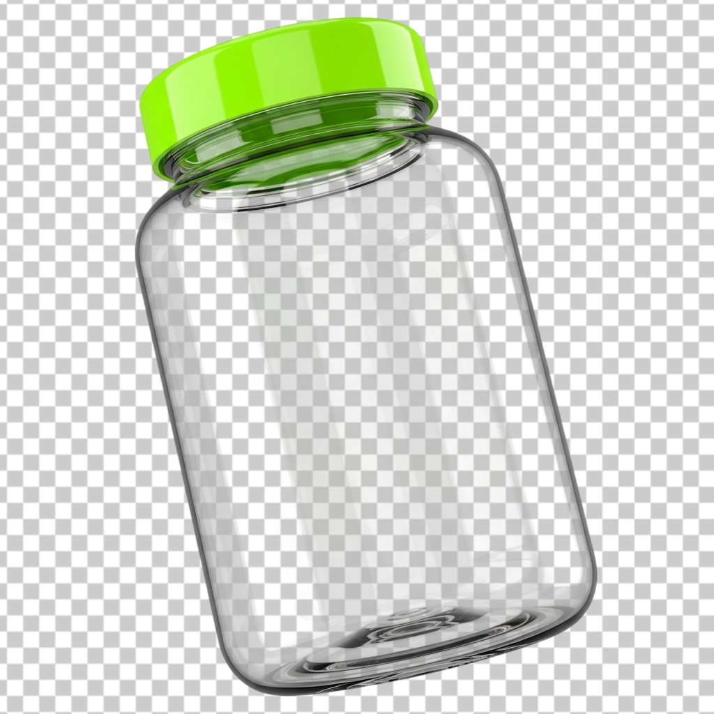 3D Empty Clear Glass Jar with Green Lid PNG Transparent Background