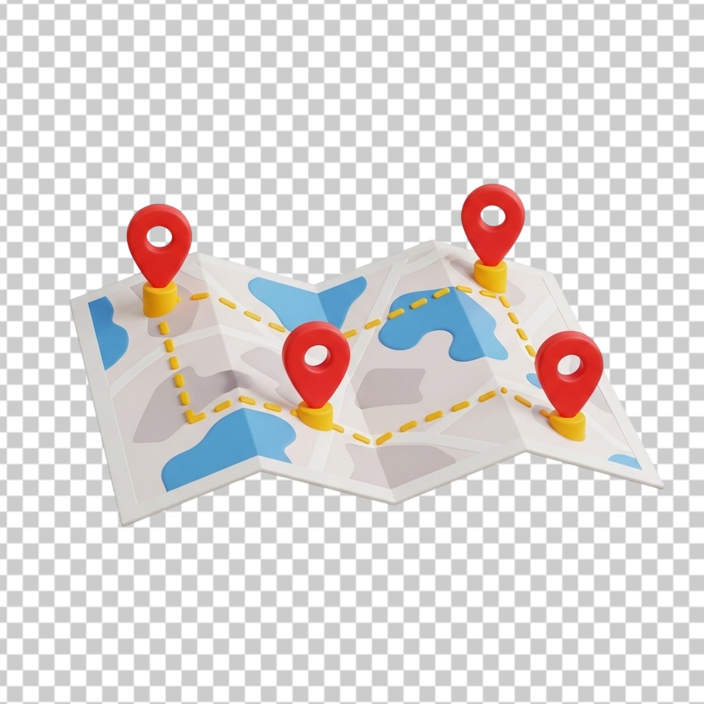 3D Folded World Map with Multiple Red Location Pin Markers PNG Transparent Background