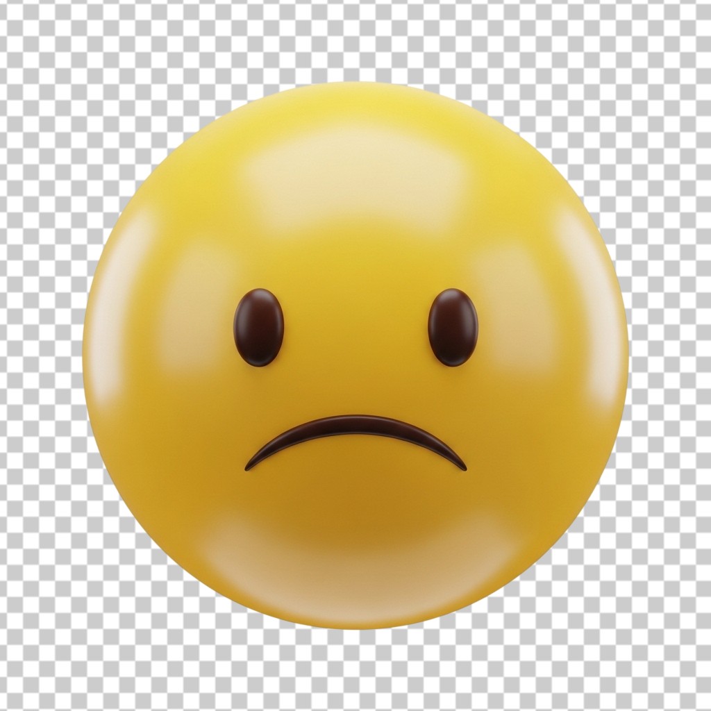 Yellow Sad Frowning Face Emoji 3D Illustration PNG Transparent Background