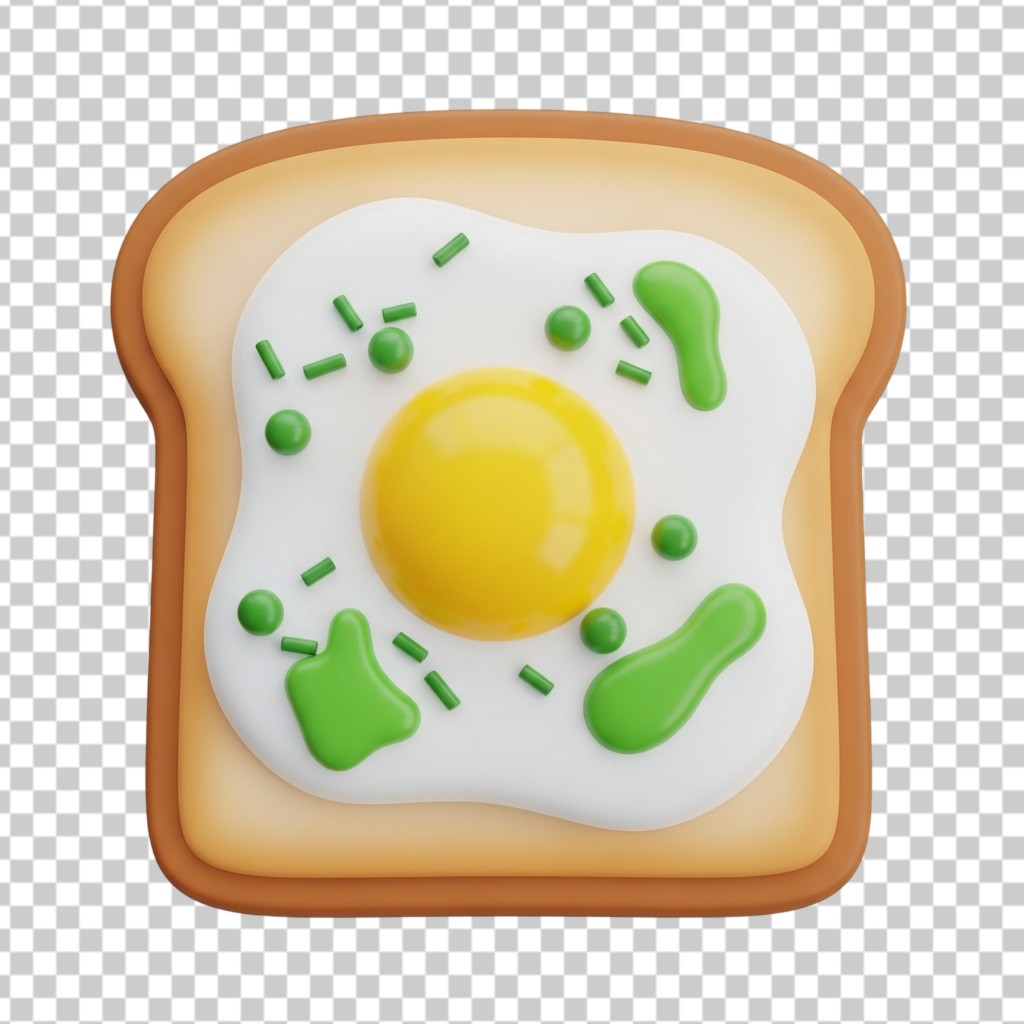 Toast Slice with Fried Egg and Herbs 3D Illustration PNG Transparent Background