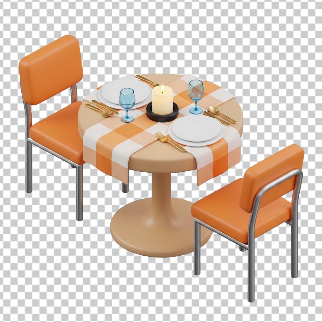 Round Dining Table Set with Chairs and Food Placements for Dinner PNG Transparent Background