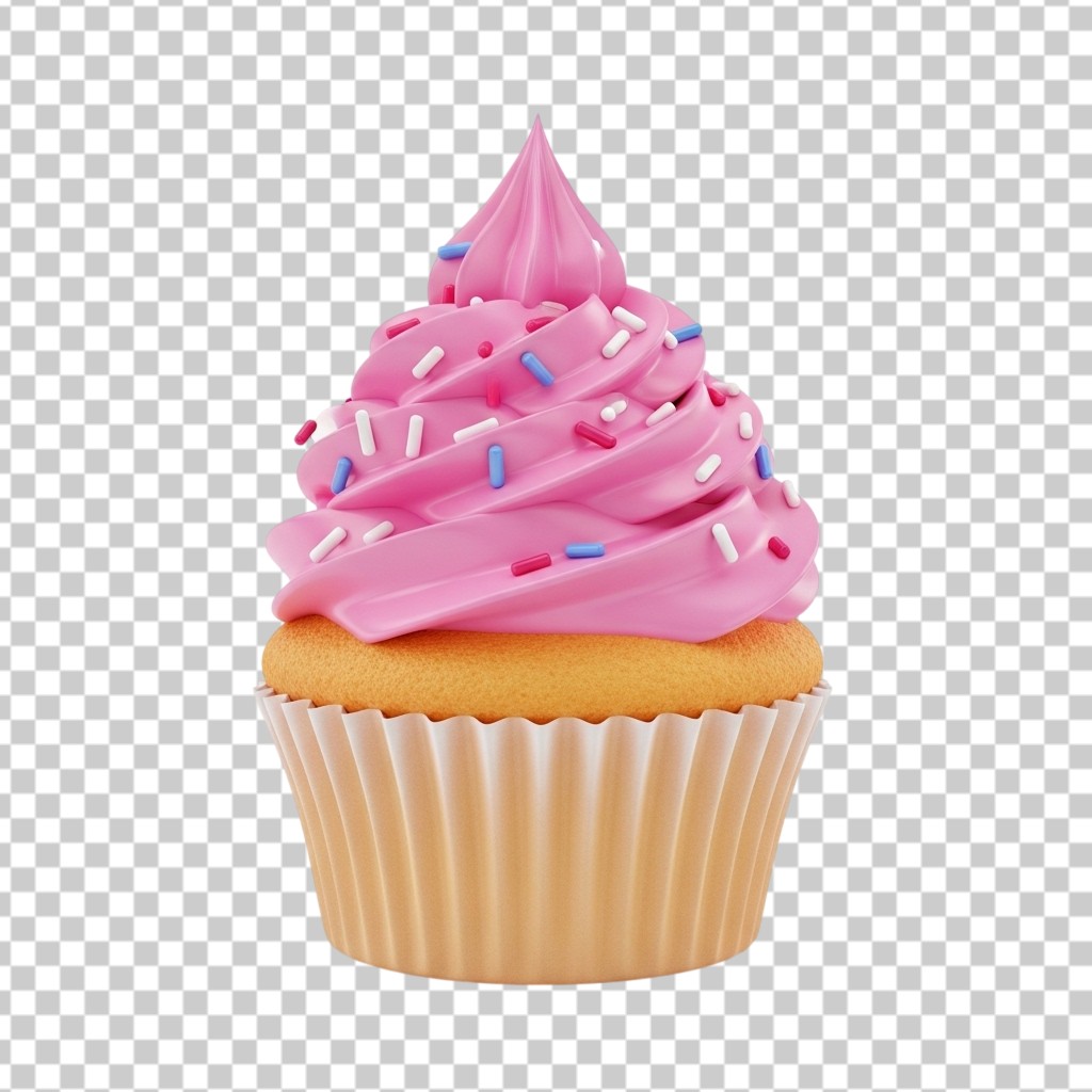 3D Sweet Pink Strawberry Cupcake PNG Transparent Background