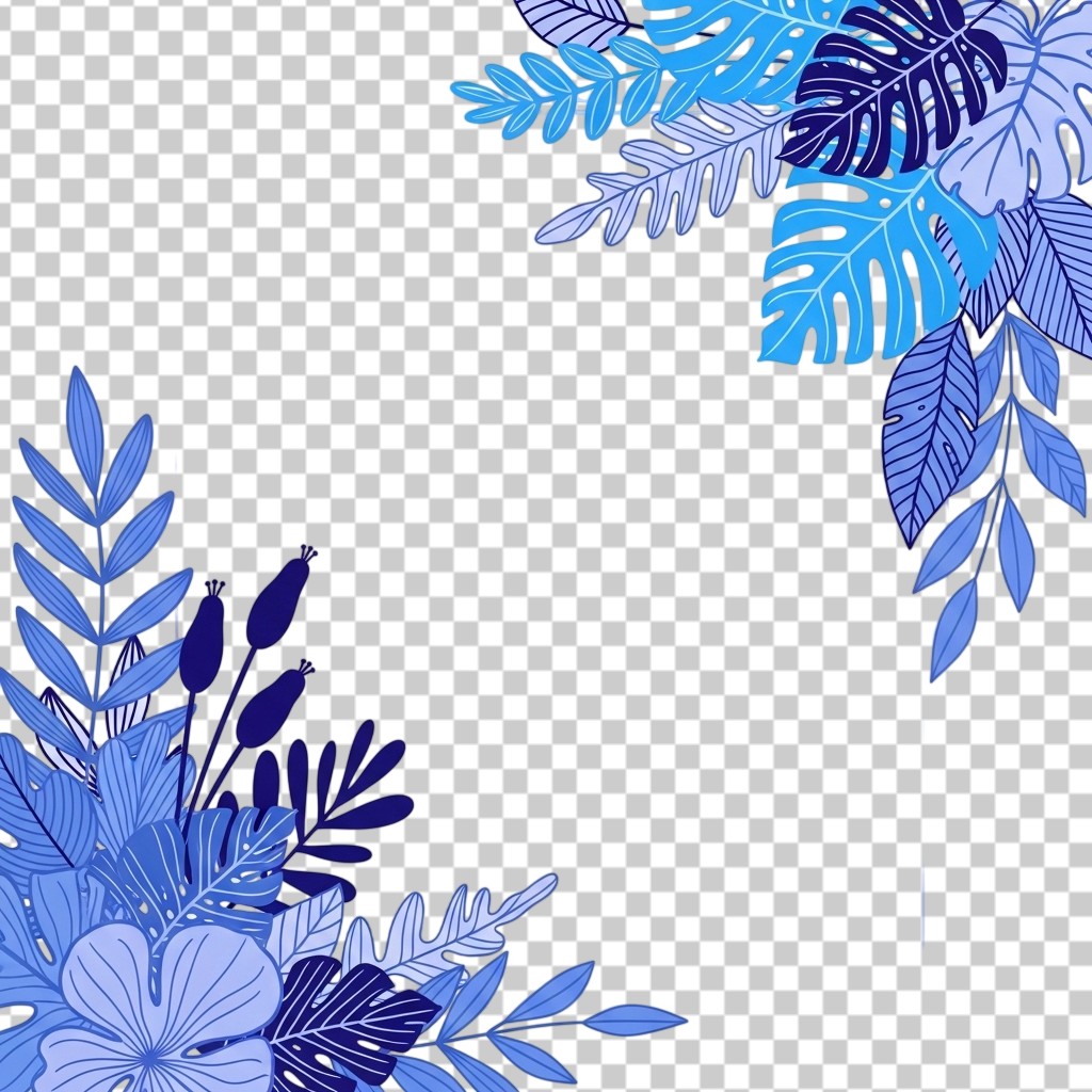 Elegant Blue Floral and Leaf Corner Border Design PNG Transparent Background