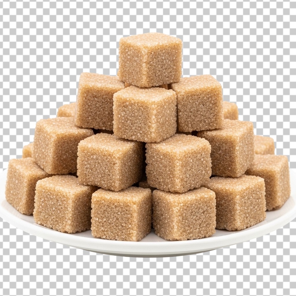 Pyramid Stack of Brown Raw Sugar Cubes on Plate PNG Transparent Background