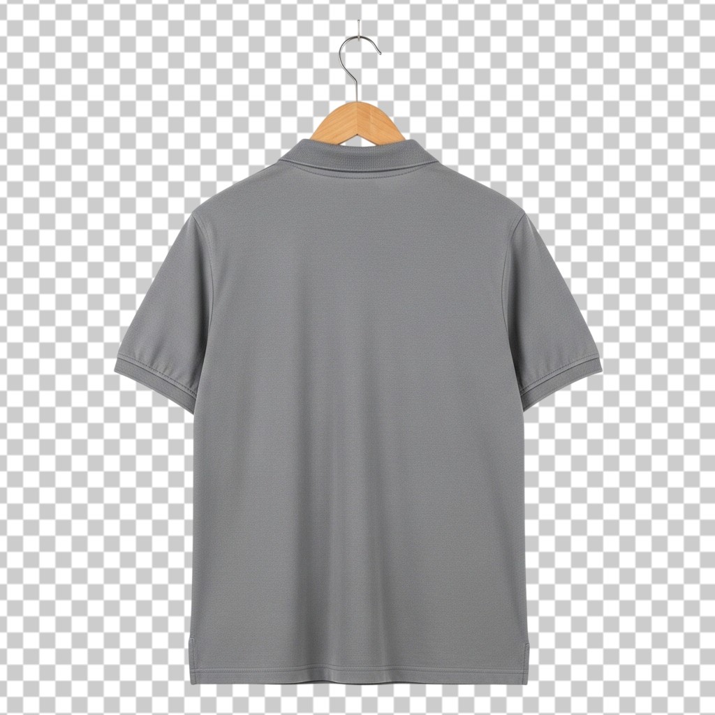 Back View of Grey Short Sleeve Polo Shirt Mockup PNG Transparent Background