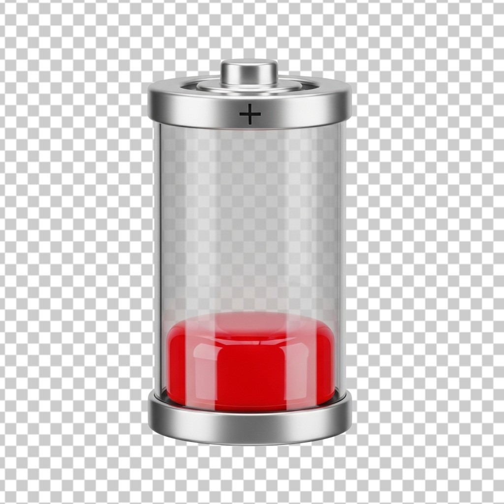 Transparent Glass Battery with Red Energy 3D Icon PNG Transparent Background