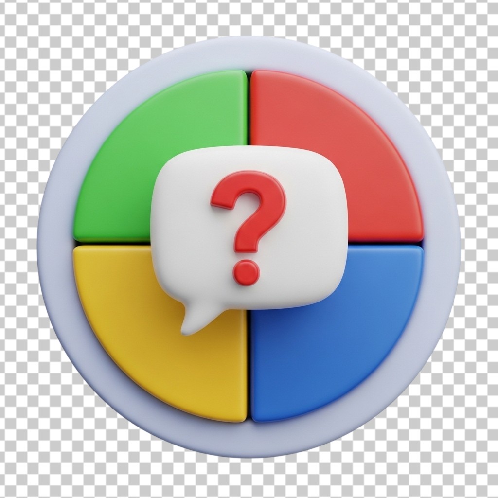 3D Quiz Concept Icon with Question Mark Bubble and Segmented Chart PNG Transparent Background