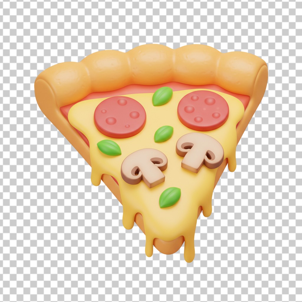 3D Supreme Pizza Slice with Mushrooms and Peppers PNG Transparent Background