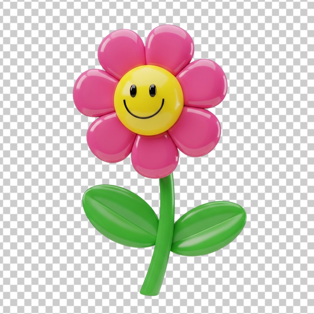 3D Happy Pink Flower with Smiley Face PNG Transparent Background