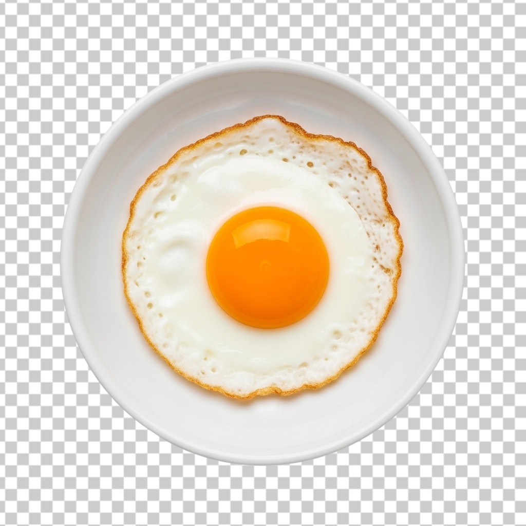 Fresh Fried Egg Sunny Side Up on White Plate PNG Transparent Background