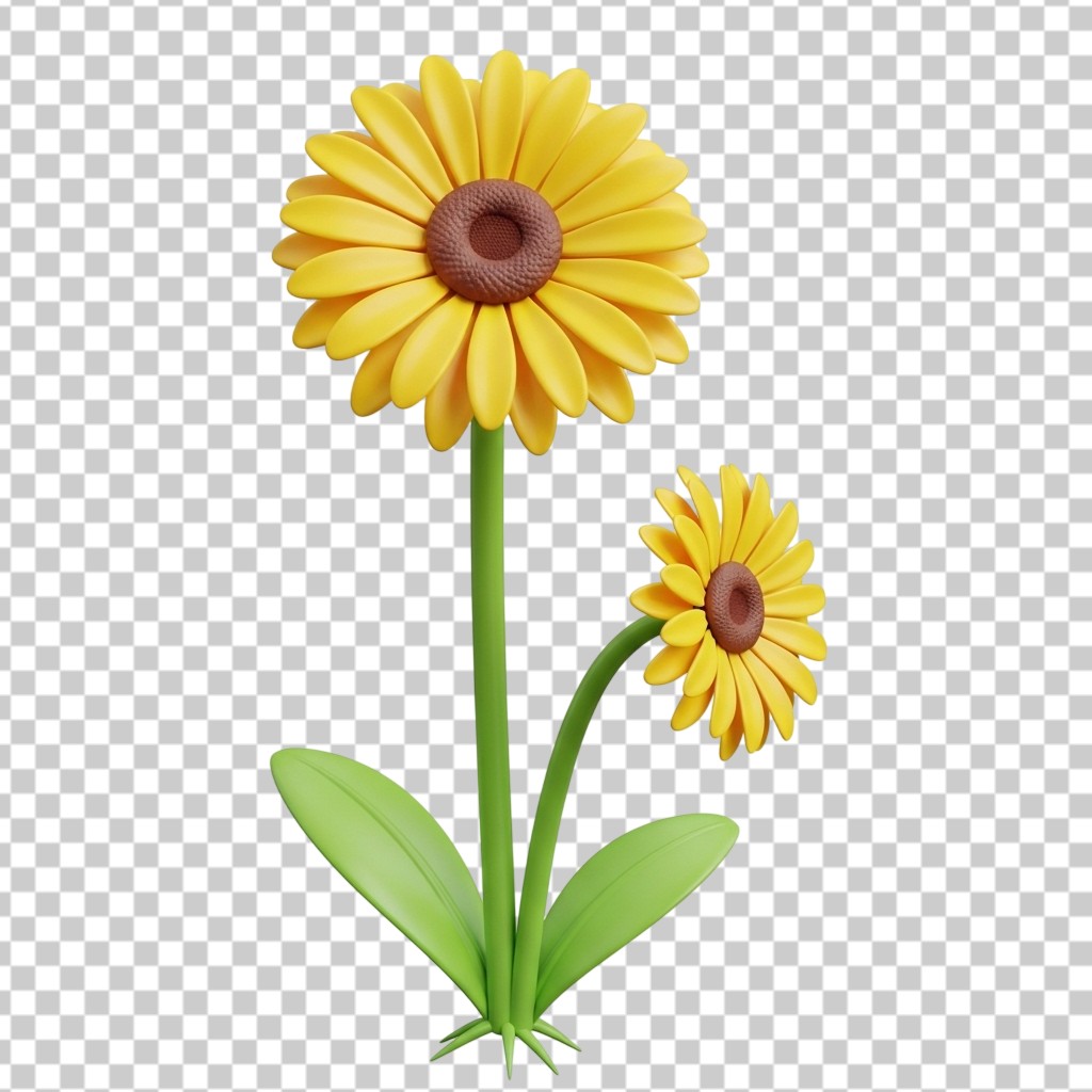 3D Beautiful Yellow Sunflowers on Green Stems PNG Transparent Background