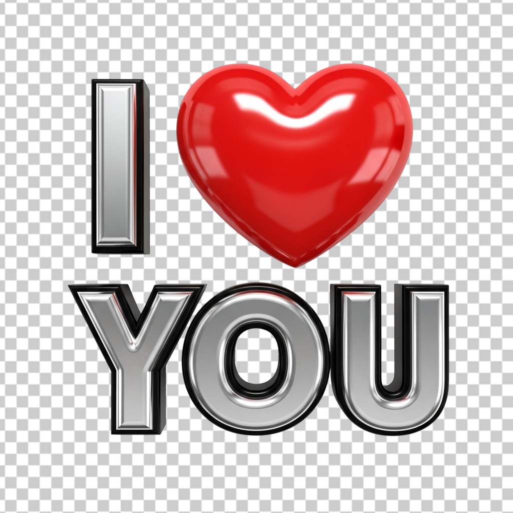 3D I Love You Text Sign with Red Heart Icon PNG Transparent Background