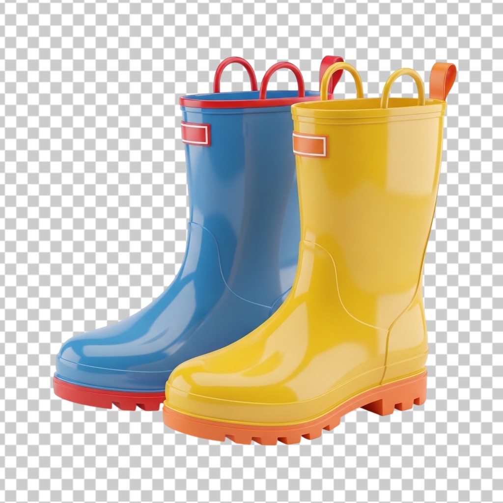 Pair of Yellow and Blue Rain Boots 3D Illustration PNG Transparent Background