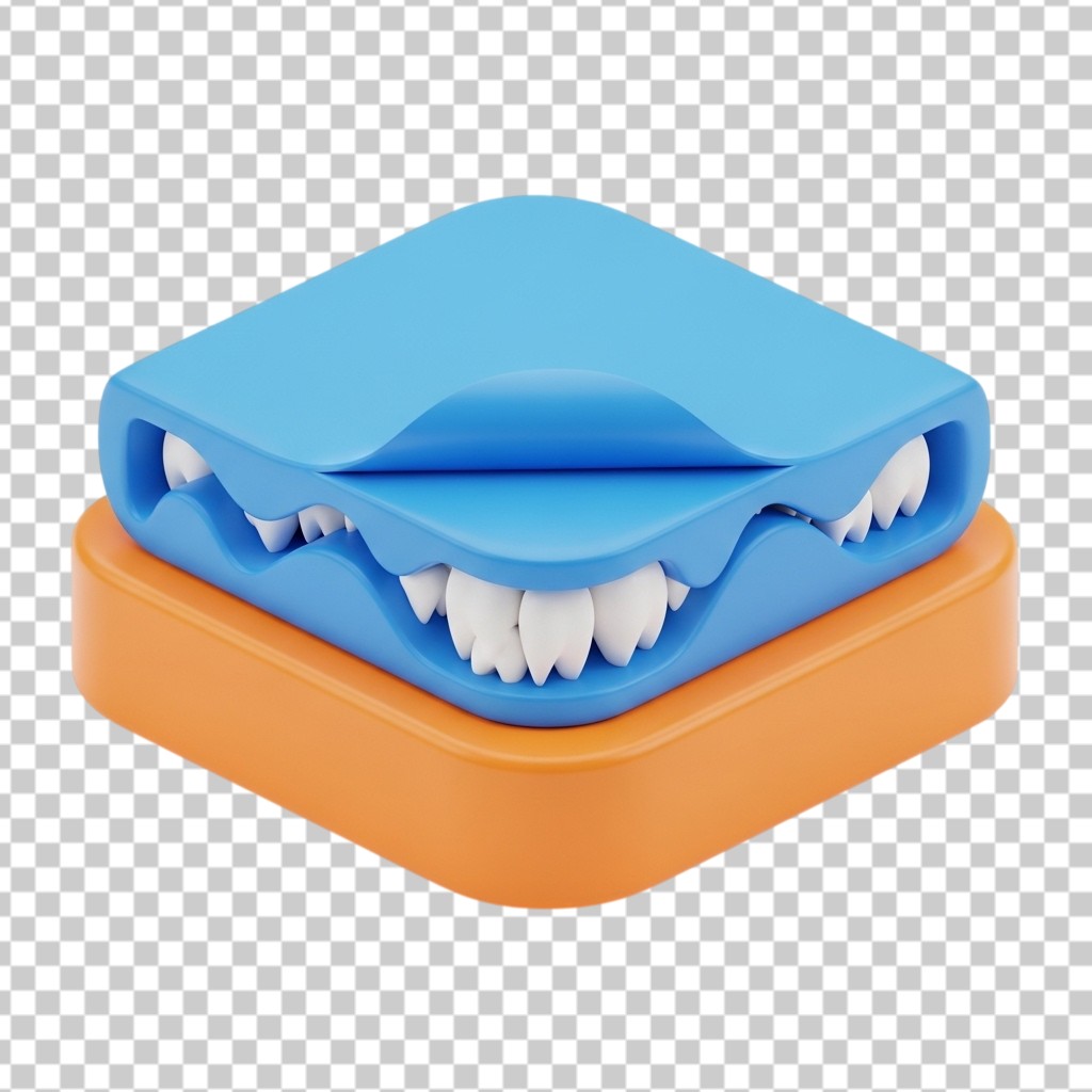 Creative 3D Blue Monster Box with Teeth and Mouth PNG Transparent Background