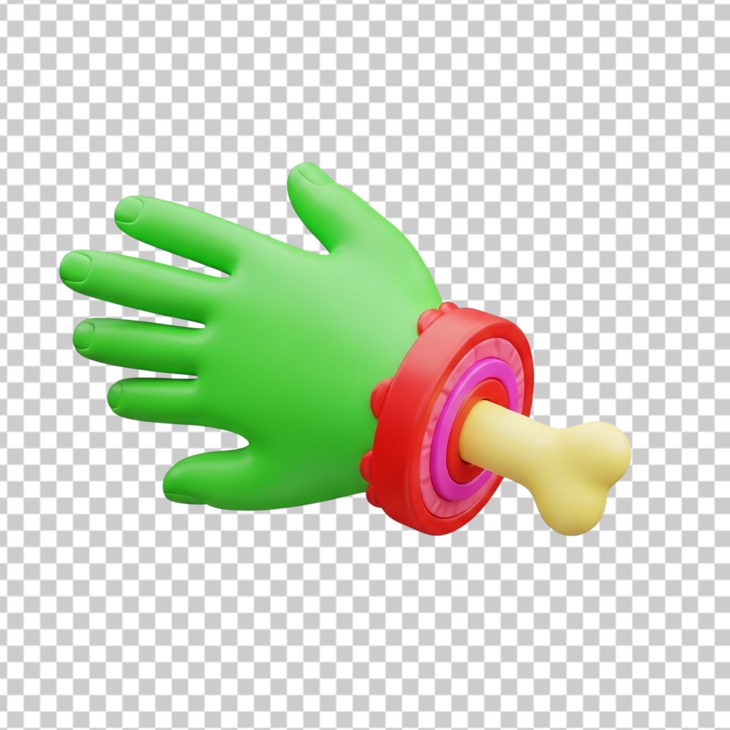 3D Zombie Green Hand with Bone for Halloween Horror PNG Transparent Background
