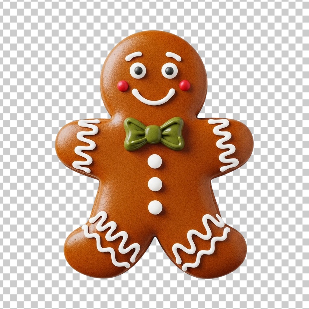 Traditional Christmas Gingerbread Man Cookie with Green Bow Decoration PNG Transparent Background