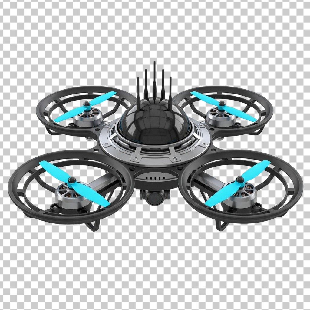 Modern Black High Tech Drone with Blue Lights PNG Transparent Background