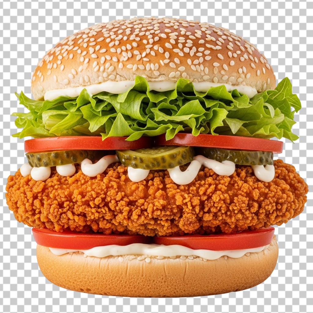 Crispy Chicken Burger with Lettuce Pickles and Mayo PNG Transparent Background