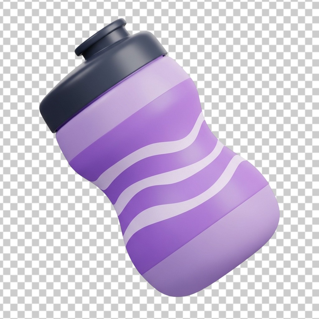 Purple Sport Water Bottle with Waves 3D Illustration PNG Transparent Background