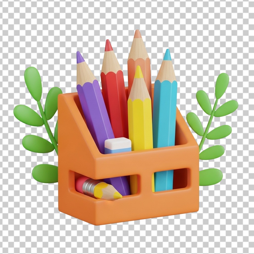 3D Office Pencil and Stationery Holder PNG Transparent Background