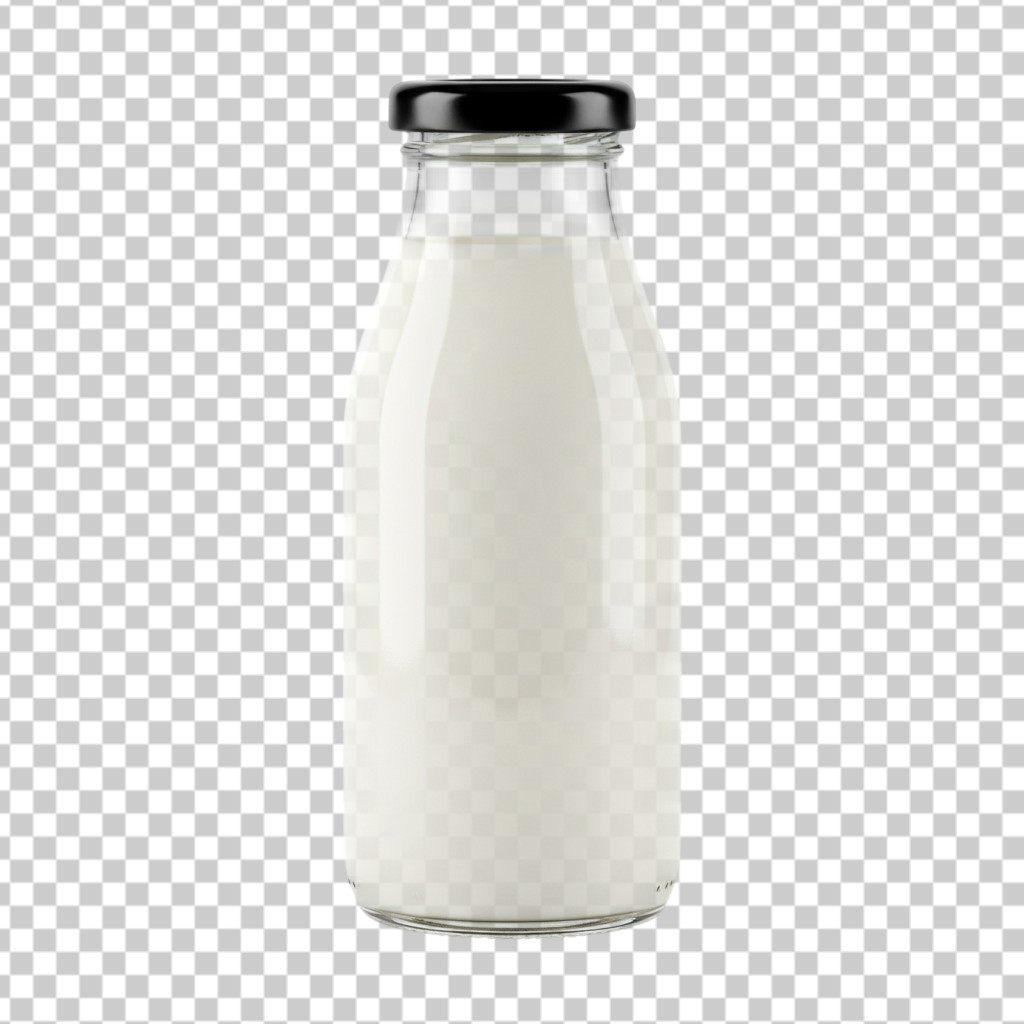 Glass Milk Bottle with Black Metal Screw Cap PNG Transparent Background