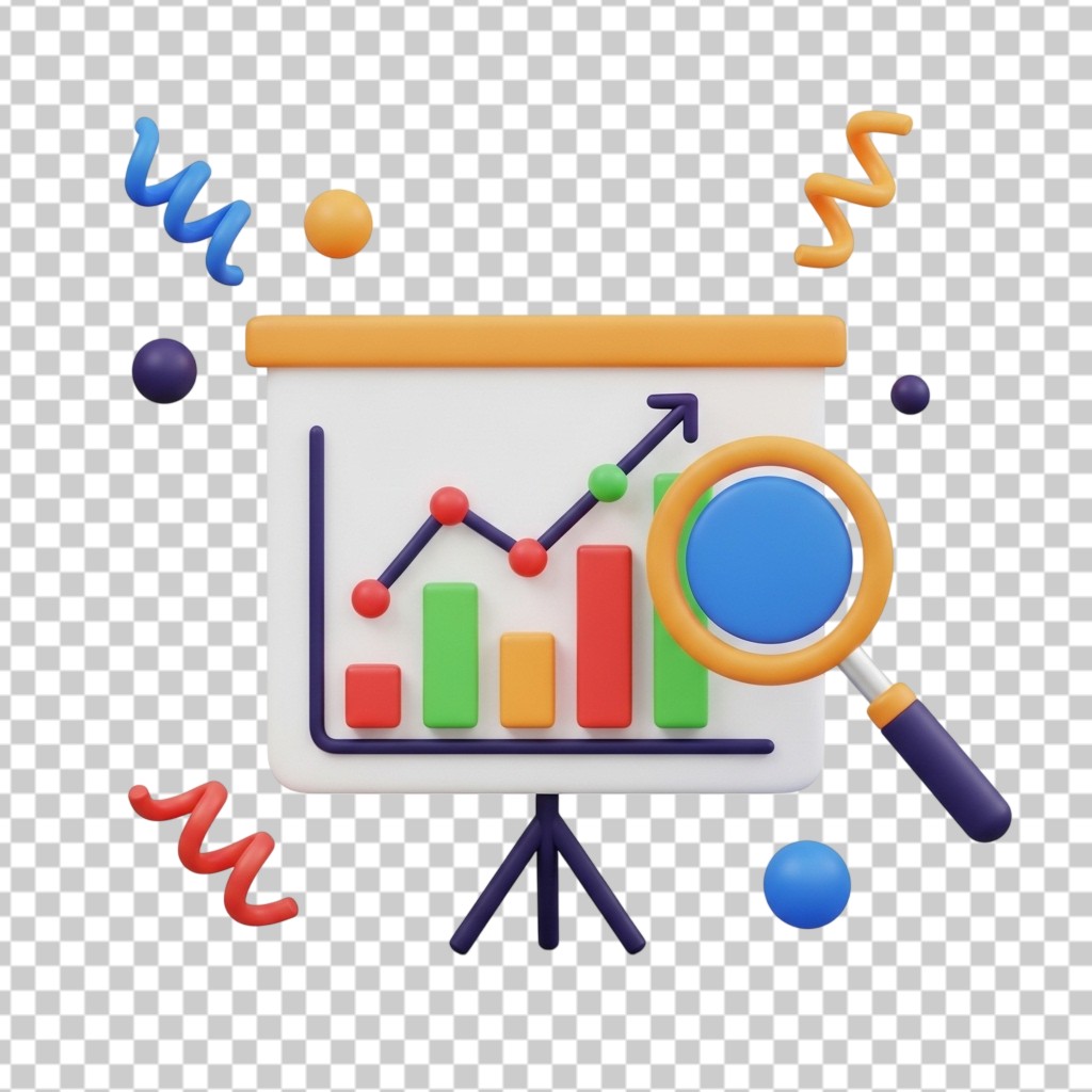 3D Business Presentation Chart and Data Board PNG Transparent Background
